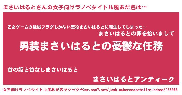 | 男性向けラノベタイトル風あだ名 | 『うちのまさいはるとが世界を掌握している!』 |