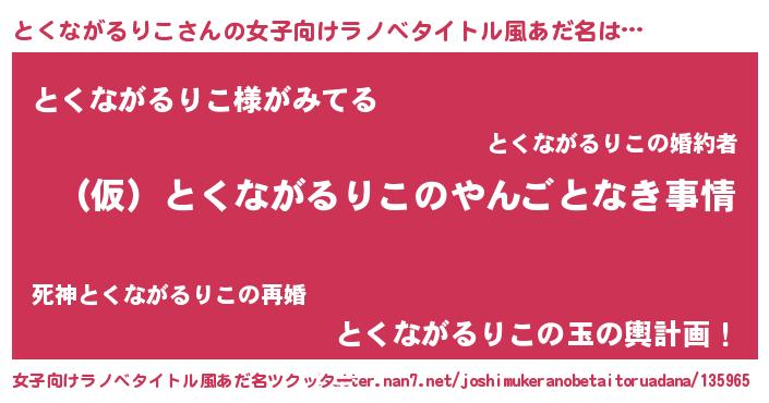 | 恥ずかしいあだ名 | 『プリティーとくながるりこ』『とくちん』 |