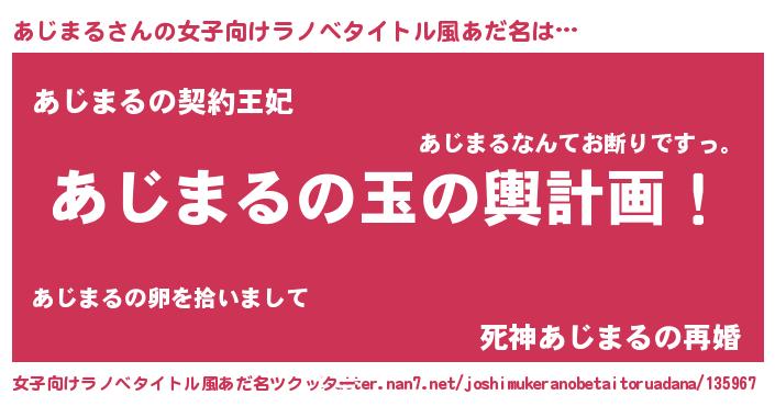 | ヒーロー風カッコイイあだ名 | 『ネオアジマル』『慈愛の使者あじまる』 |