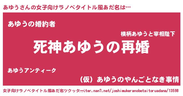| 意味不明あだ名 | 『眠気覚ましガムあゆう味』『自称あゆう』 |