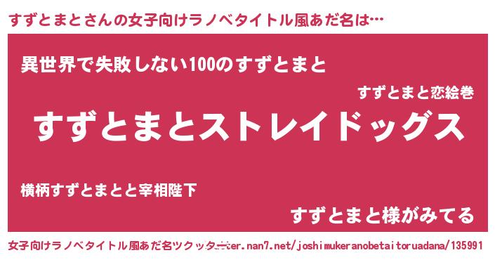 | 男性向けラノベタイトル風あだ名 | 『Re:すずとまとから始める異世界生活』 |