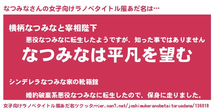 | 意味不明あだ名 | 『とにかく怪しいなつみな』 |