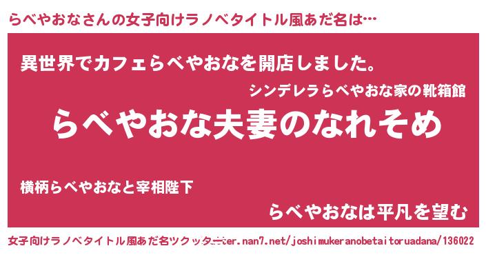 | ヘコむあだ名 | 『らべやおな(震え声)』『らべっ子』 |