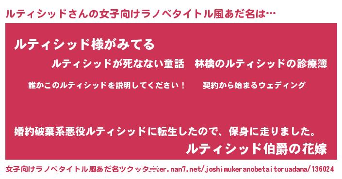| 男性向けラノベタイトル風あだ名 | 『ルティシッドアートオンライン』 |