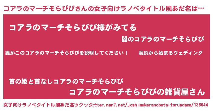 | 男性向けラノベタイトル風あだ名 | 『コアラノマーチソラビビアートオンライン』 |
