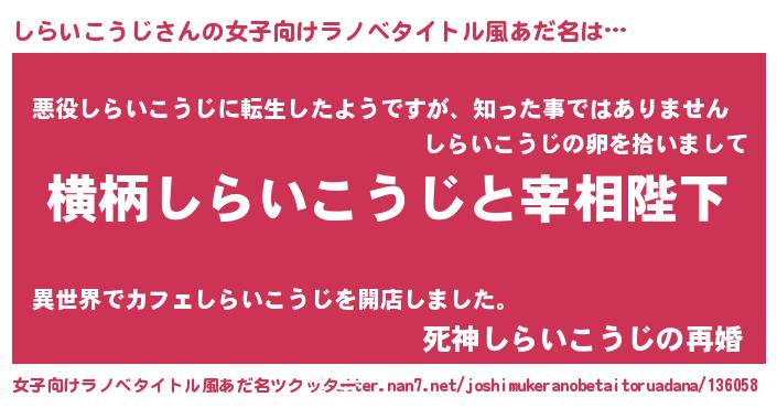 | 男性向けラノベタイトル風あだ名 | 『しらいこうじに滅ぼされるだけの簡単なお仕事です』 |