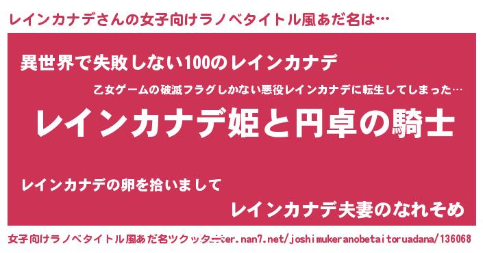 | 男性向けラノベタイトル風あだ名 | 『レインカナデの憂鬱』 |