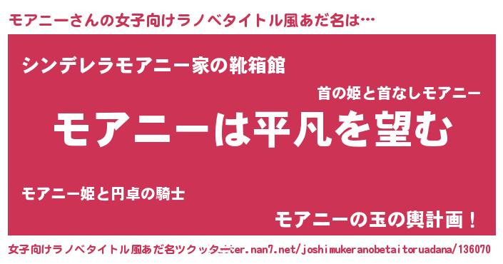 | 胡散臭い通販商品みたいなあだ名 | 『信頼と実績のペンダント…その名も「モアニー」』 |