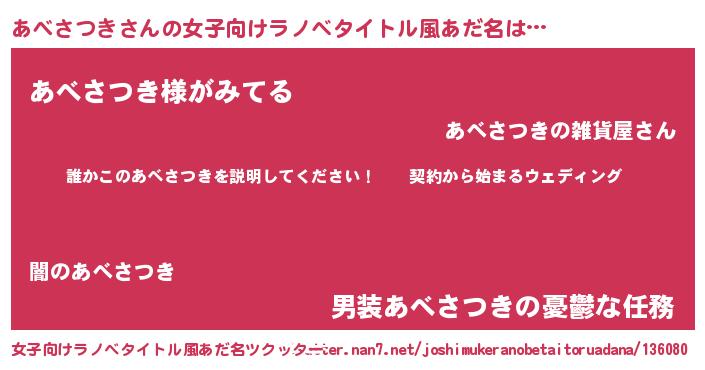| 胡散臭い通販商品みたいなあだ名 | 『億万長者になれるブレスレット…その名も「あべさつき」』 |