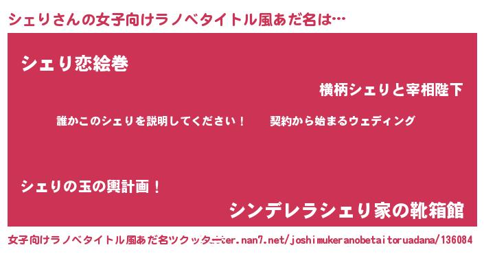 | 胡散臭い通販商品みたいなあだ名 | 『億万長者になれる霊験あらたかなお札…その名も「シェり」』 |