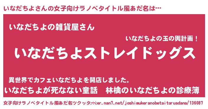 | 男性向けラノベタイトル風あだ名 | 『Re:いなだちよから始める異世界生活』 |