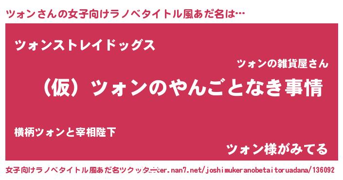 | 男性向けラノベタイトル風あだ名 | 『ツォンの憂鬱』 |