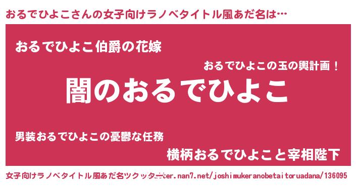 | 男性向けラノベタイトル風あだ名 | 『Re:おるでひよこから始める異世界生活』 |