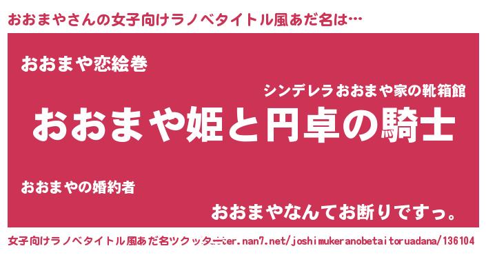 | 男性向けラノベタイトル風あだ名 | 『おおまやの憂鬱』『緋弾のオオマヤ』 |