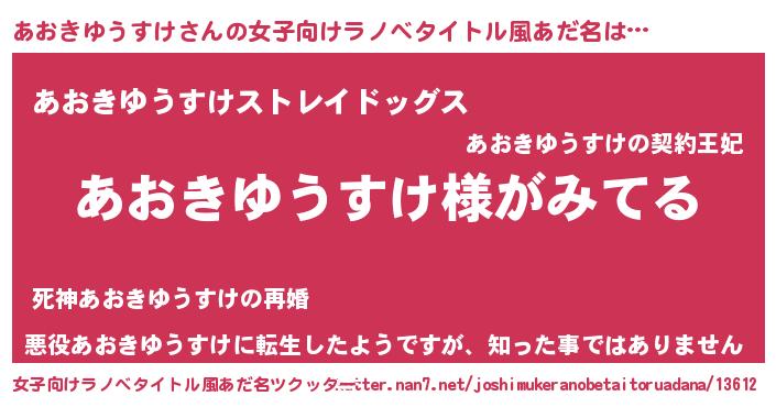 | 男性向けラノベタイトル風あだ名 | 『あおきゆうすけの嫁は女の子じゃないと思った?』 |