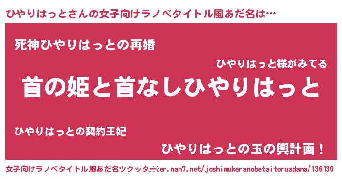 | 男性向けラノベタイトル風あだ名 | 『はたらくひやりはっとさま!』 |