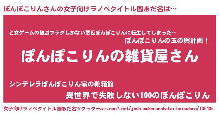 | 男性向けラノベタイトル風あだ名 | 『やはりぽんぽこりんの青春ラブコメはまちがっている 』 |