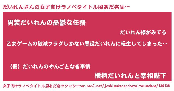 | 男性向けラノベタイトル風あだ名 | 『この素晴らしい世界にだいれんを!』 |