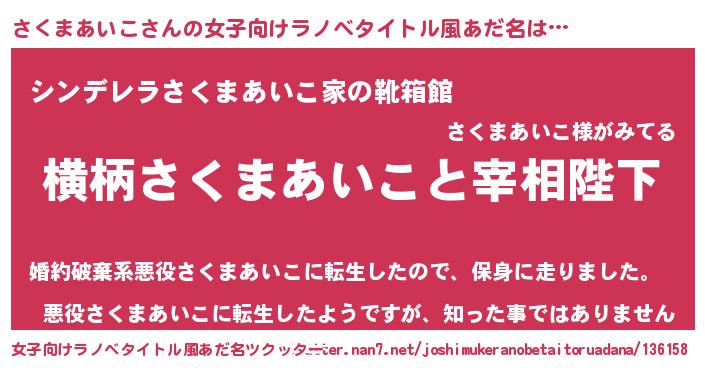 | 意味不明あだ名 | 『住所不定無職さくまあいこ(56歳)』 |