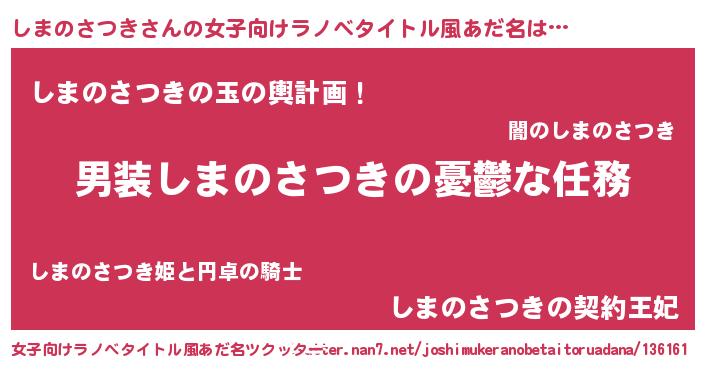| 男性向けラノベタイトル風あだ名 | 『うちのしまのさつきが世界を掌握している!』 |