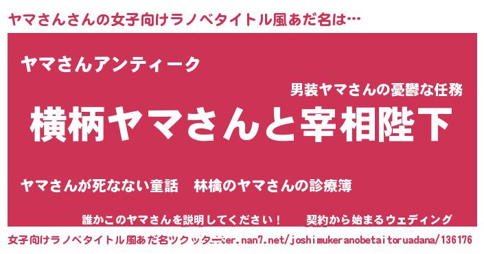 | 男性向けラノベタイトル風あだ名 | 『ヤマさんに滅ぼされるだけの簡単なお仕事です』 |