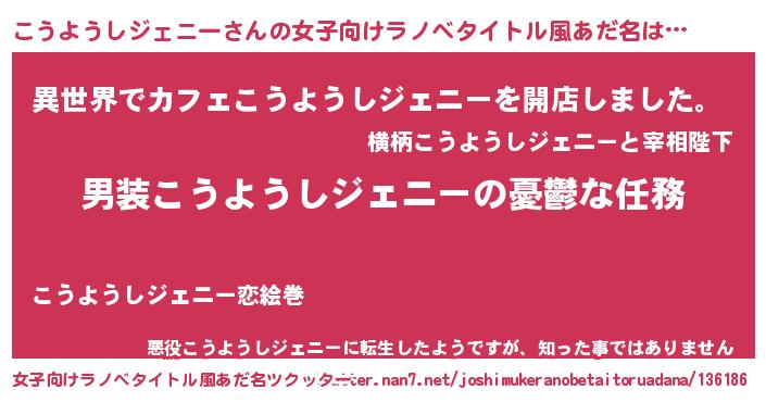 | 男性向けラノベタイトル風あだ名 | 『うちのこうようしジェニーが世界を掌握している!』 |
