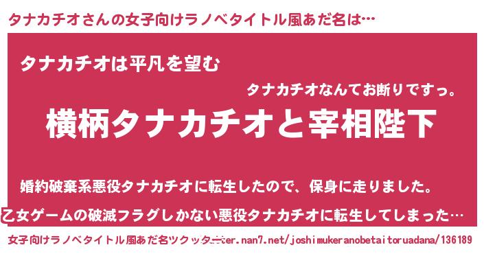 | 男性向けラノベタイトル風あだ名 | 『タナカチオに滅ぼされるだけの簡単なお仕事です』 |