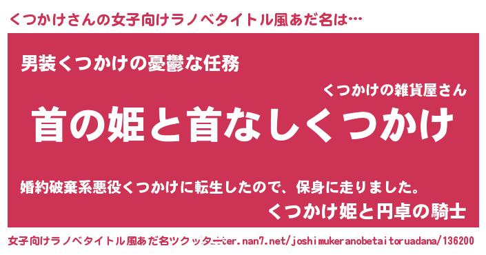 | 男性向けラノベタイトル風あだ名 | 『はたらくくつかけさま!』 |