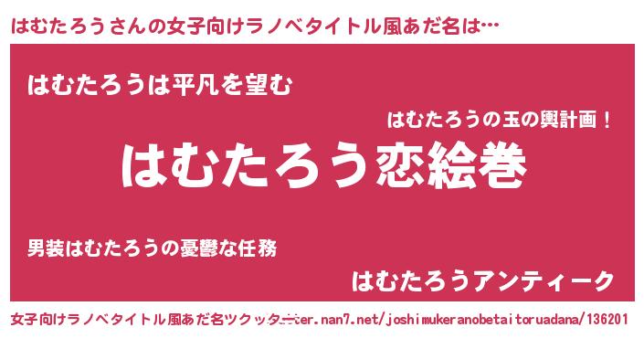 | ヒーロー風カッコイイあだ名 | 『慈愛の使者はむたろう』『黄金騎士ハム』 |
