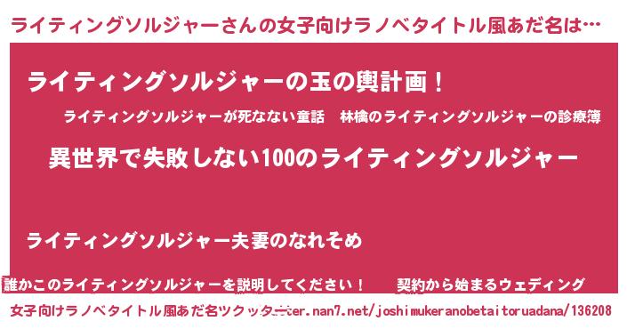 | 男性向けラノベタイトル風あだ名 | 『ライティングソルジャーという概念が存在しない退屈な世界 』 |