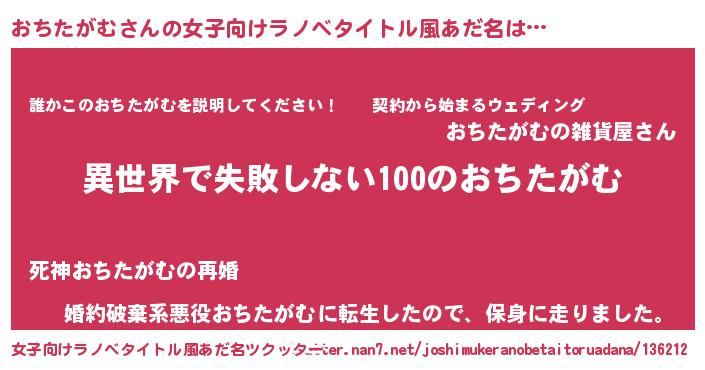 | 男性向けラノベタイトル風あだ名 | 『おちたがむという概念が存在しない退屈な世界 』 |