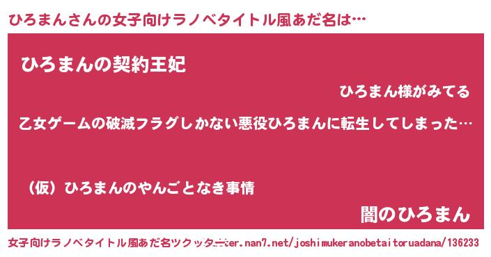 | 男性向けラノベタイトル風あだ名 | 『この素晴らしい世界にひろまんを!』 |