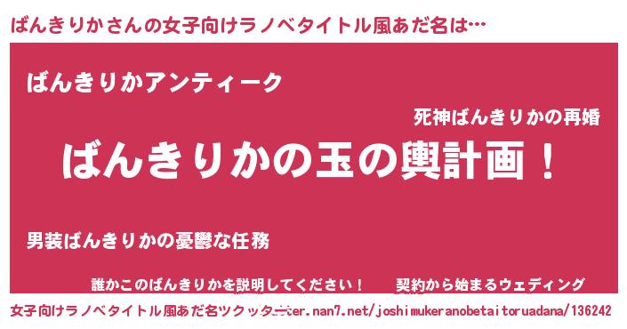 | 意味不明あだ名 | 『ニラ科ばんきりか属』『自称ばんきりか』 |
