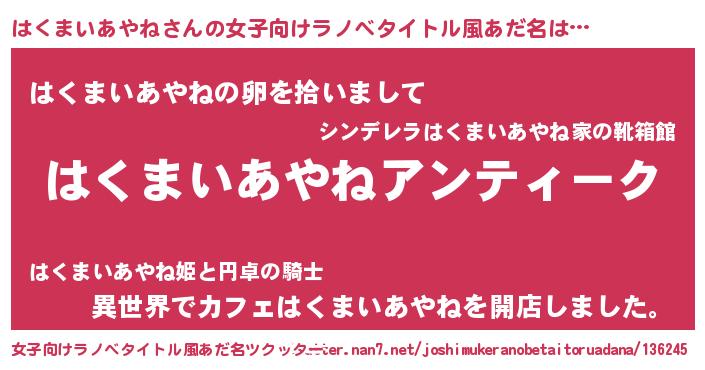 ポケモン風あだ名 | 『ハクセウス』『ヒハクマイアヤネ』 |