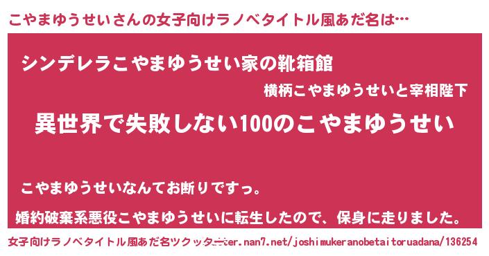 | 男性向けラノベタイトル風あだ名 | 『こやまゆうせいという概念が存在しない退屈な世界 』 |