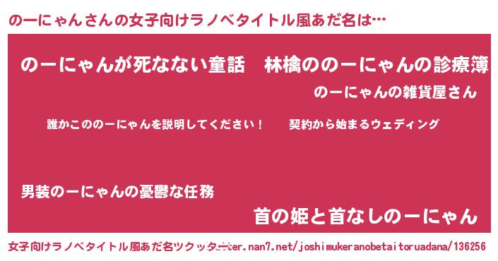 | ヒーロー風カッコイイあだ名 | 『スーパーノーニャン』『仮面ノーダー』 |