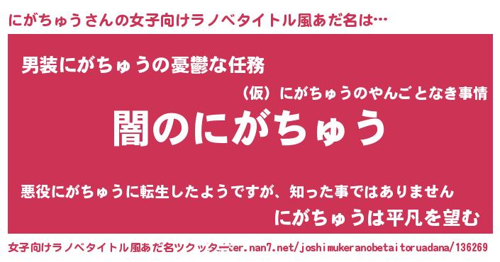 | 猫 | 猫としての経歴『野原家に生まれる→主のヒザの上で一夜を明かす→地域猫化して現在に至る』 |