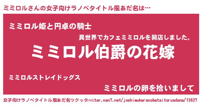 | ファンタジー風あだ名 | 『エターナルミミロルー』『ミミフェル』 |
