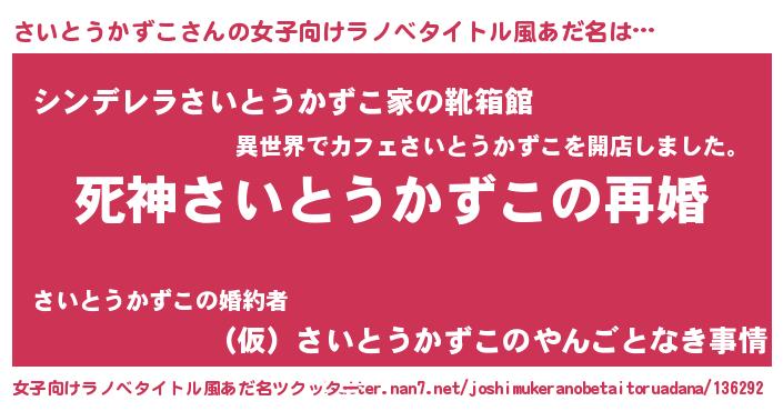 | 男性向けラノベタイトル風あだ名 | 『ノーゲーム・ノーサイトウカズコ』 |