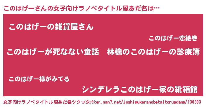 | 意味不明あだ名 | 『住所不定無職このはげー(43歳)』 |