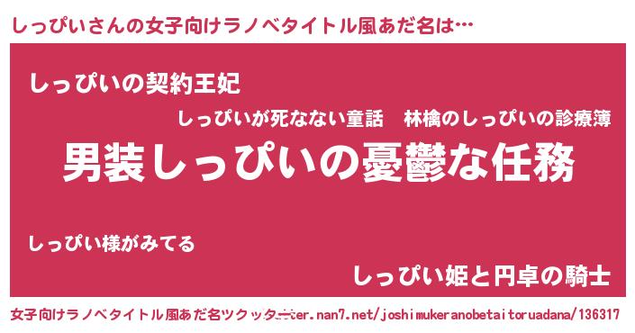 | 男性向けラノベタイトル風あだ名 | 『うちのしっぴいが世界を掌握している!』 |