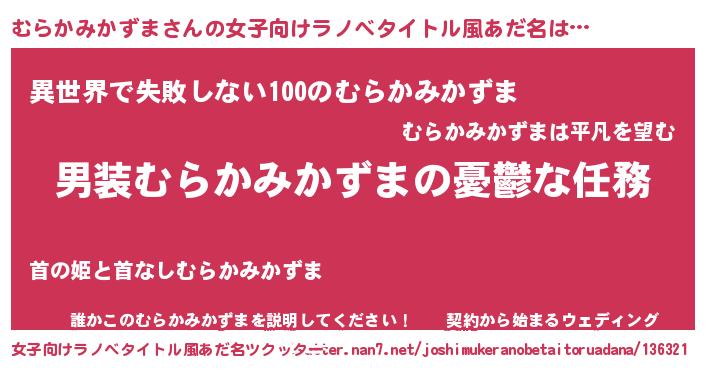 | 男性向けラノベタイトル風あだ名 | 『冴えないむらかみかずまの育てかた』 |