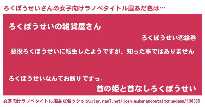 | 男性向けラノベタイトル風あだ名 | 『この素晴らしい世界にろくぼうせいを!』 |