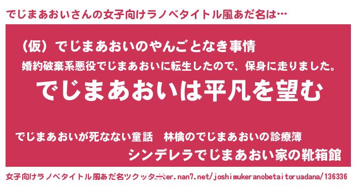 | 男性向けラノベタイトル風あだ名 | 『ダンジョンにでじまあおいを求めるのは間違っているだろうか』 |