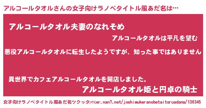 | 男性向けラノベタイトル風あだ名 | 『この素晴らしい世界にアルコールタオルを!』 |