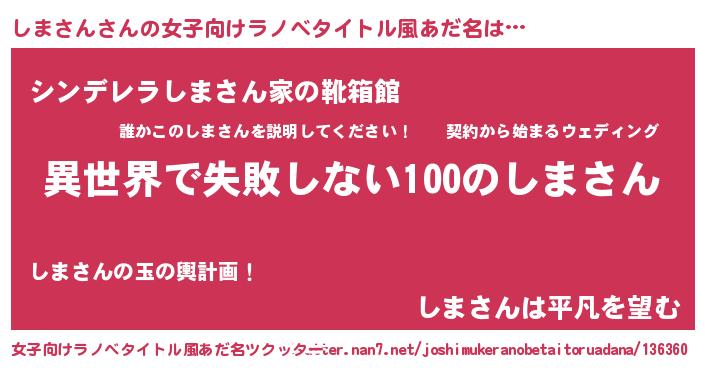 | 胡散臭い通販商品みたいなあだ名 | 『絶対に幸福をもたらす健康食品…その名も「しまさん」』 |