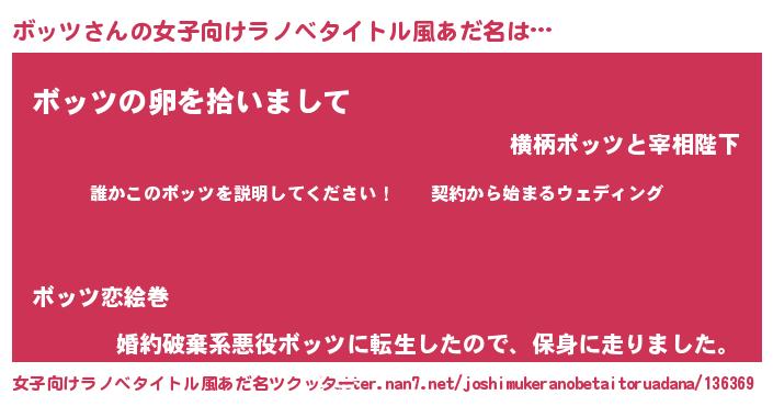 | 男性向けラノベタイトル風あだ名 | 『ボッツアートオンライン』 |