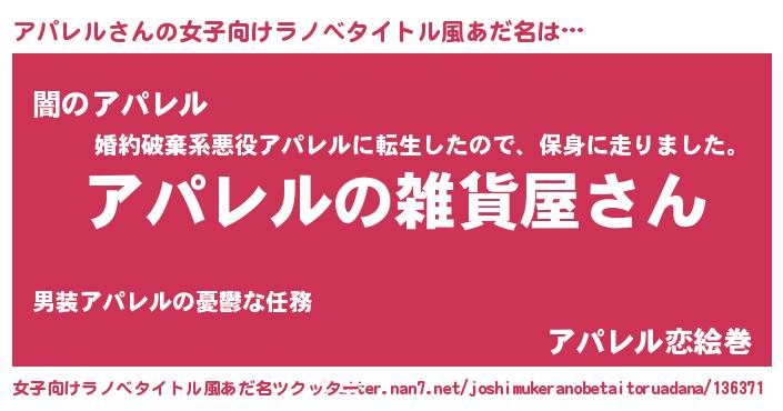 | 胡散臭い通販商品みたいなあだ名 | 『幸せが訪れる高級そうな壺…その名も「アパレル」』 |
