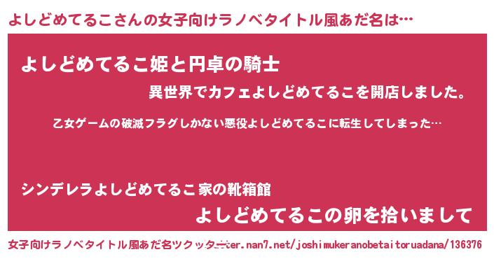 | 欧米人風あだ名 | 『ダレノガレよしどめてるこ』 |
