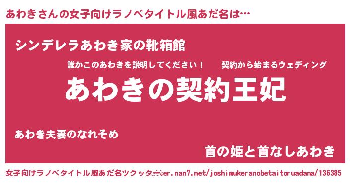 | 意味不明あだ名 | 『永久保存あわき』『ペロリンあわき』 |